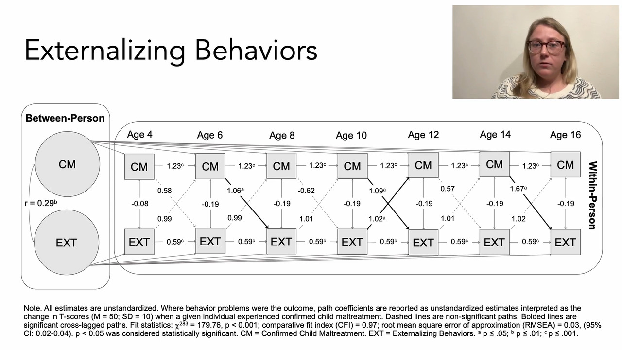 Random-intercept cross-lagged panel models highlight maltreatment robustly predicting later behavior problems and externalizing behaviors predicting maltreatment in early adolescence.